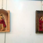 وتنوعت أعمال الفنان مصطفى شخيص الذي دخل فن النحت منذ 40 عاما بين الروليف والنحت المجسم بموضوعات مختلفة(الخط العربي والمرأة والوجوه إضافة إلى حالات تكوينية بموضوعات إنسانية واجتماعية تعبر عن انفعالات وجوانب الحياة المختلفة بعضها جاء كلاسيكيا وآخر ركز على التكوين النحتي الذي يرى أنه يتطلب سعة الخيال والأفق بالتصميم والحرفية والدقة في التنفيذ.
