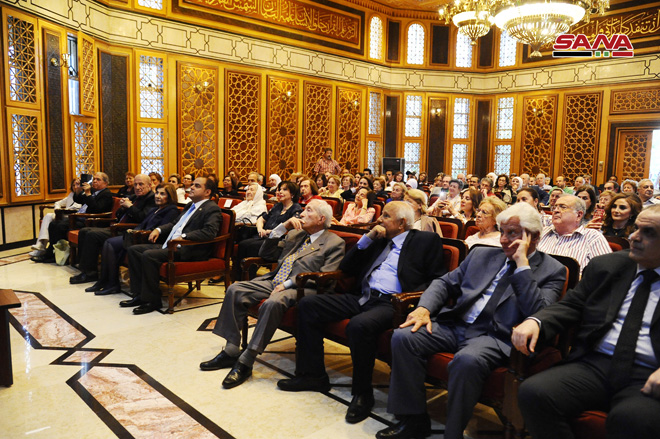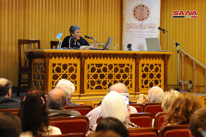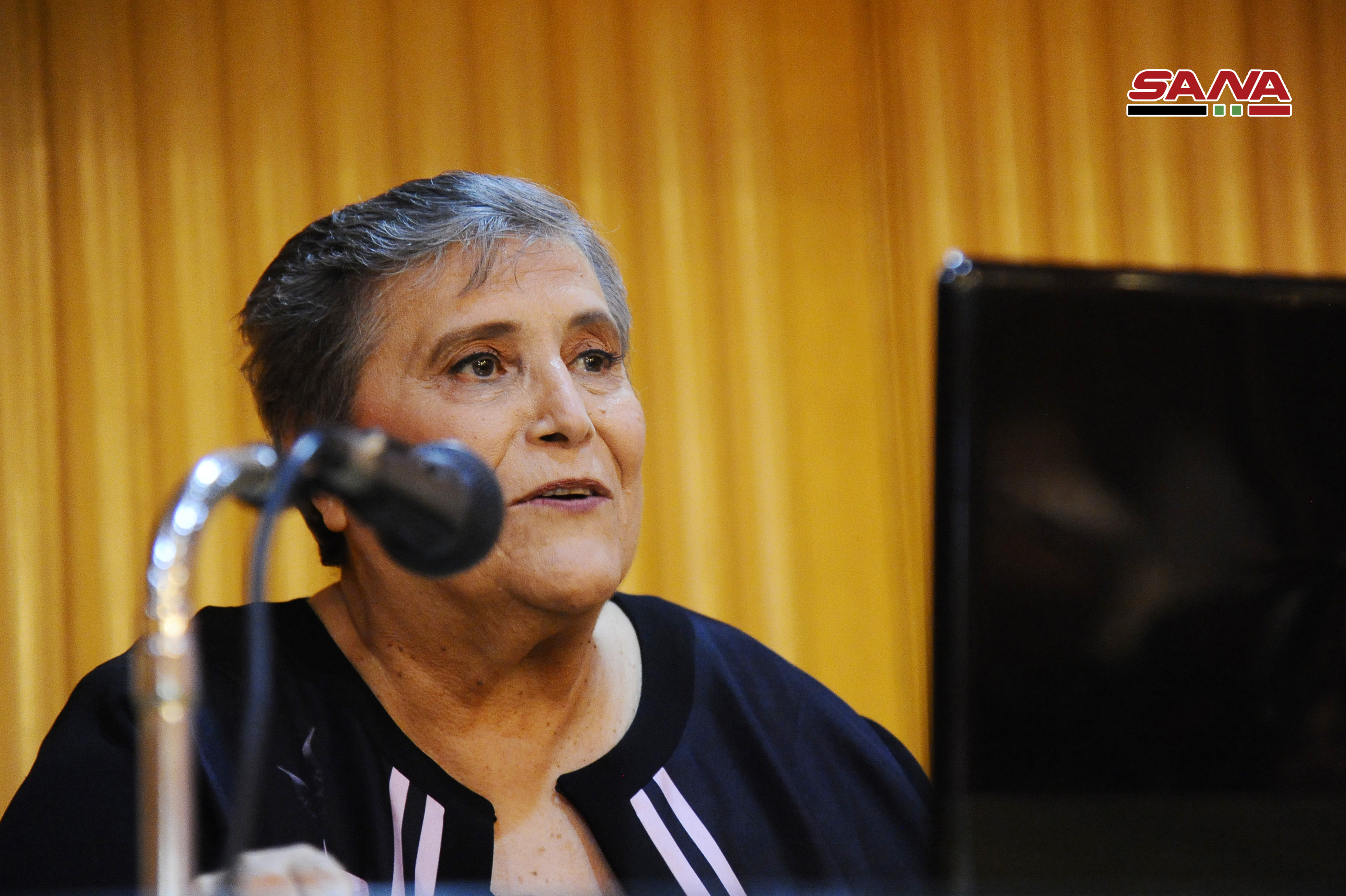 وعرضت الدكتورة السقطي المعالم الأثرية في كل سورية من شمالها إلى جنوبها وغربها وشرقها وما تضمه من مدن هي الأقدم في التاريخ إضافة إلى كتب غربية عنيت بغنى سورية الحضاري.