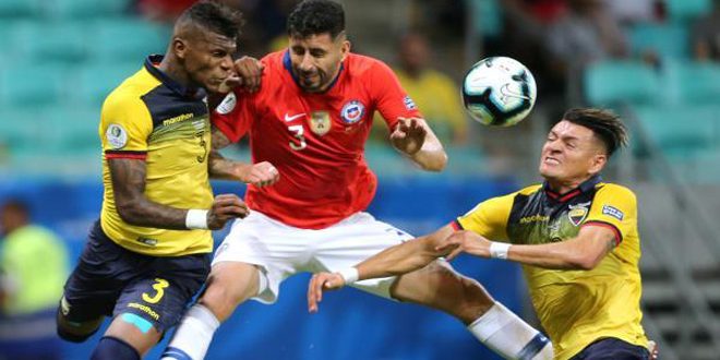 بلغ المنتخب التشيلي حامل اللقب ربع نهائي بطولة كوبا أمريكا بعد الفوز على الإكوادور بهدفين لهدف فجر اليوم في الجولة الثانية من مباريات المجموعة الثالثة بالدور الأول.