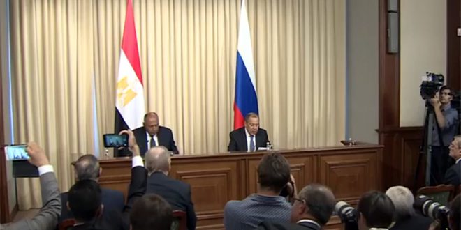 وقال لافروف خلال مؤتمر صحفي مع نظيره المصري سامح شكري في موسكو اليوم: “ملتزمون بشكل كامل بالقرار الأممي 2254 وقبل كل شيء احترام سيادة وسلامة الأراضي السورية” مشيرا إلى أهمية دعم المجتمع الدولي لإعادة الإعمار في سورية.