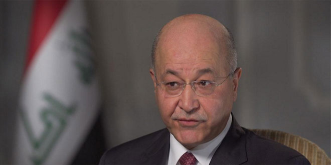 أكد الرئيس العراقي برهم صالح أن بلاده لن تسمح للولايات المتحدة باستخدام أراضيها كقاعدة للاعتداء على أي من دول الجوار.