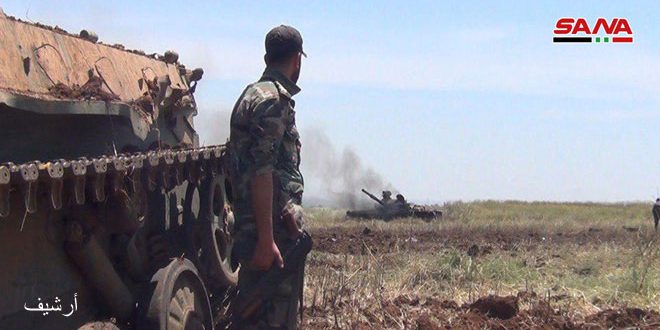وذكر مراسل سانا في حماة أن وحدات الجيش وسعت نطاق رماياتها لتطال تحصينات وخطوط إمداد “جبهة النصرة” وما يسمى “كتائب العزة” على محوري قرية تل الصخر وبلدة كفرزيتا بالقرب من الحدود الإدارية لريف إدلب الجنوبي وذلك بعد رصد تحركات وإمدادات للإرهابيين ومحاولات تسلل باتجاه النقاط العسكرية والمناطق الآمنة.
