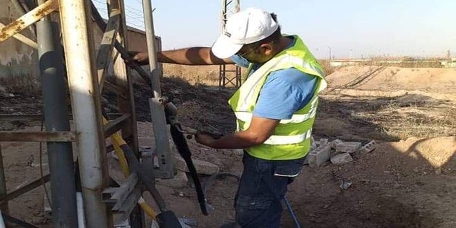 أنجزت الورشات الفنية التابعة للشركة العامة لكهرباء محافظة الحسكة أعمال الصيانة والتأهيل لمركز التحويل الكهربائي في قرية باب الخير جنوب مدينة الحسكة.