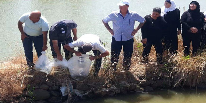 وزعت الهيئة العامة للثروة السمكية بالتعاون مع مديرية زراعة حمص إصبعيات سمك على نحو 45 مزارعا في قرى خربة الحمام والغزيلة وقطينة والغسانية.