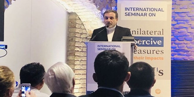 وقال عراقجي اليوم خلال الندوة الدولية المنعقدة في العاصمة النمساوية فيينا بعنوان “الإجراءات القسرية أحادية الجانب وتداعياتها” إن على أمريكا التوقف عن سلوكها المخرب وإرهابها الاقتصادي ضد إيران داعيا المجتمع الدولي إلى الوقوف بوجه المخططات الأمريكية التي تستخدم الحظر والعقوبات سلاحا ضد الحكومات المستقلة.
