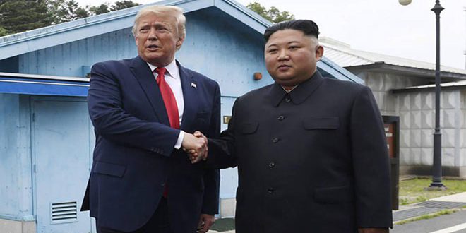 التقى الرئيسان الكوري الديمقراطي كيم جونغ أون والأمريكي دونالد ترامب في المنطقة الأمنية المشتركة بين الكوريتين بقرية بانمونجوم اليوم ليكون هذا اللقاء الثالث بينهما.