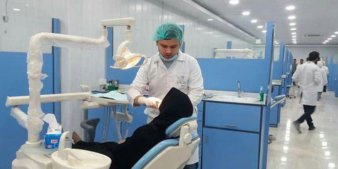 ثلاث عيادات وستة مخابر في خدمة طلاب كلية طب الأسنان في جامعة البعث حالياً لتنفيذ جلسات تدريب وتعليم وتأهيل تضمن حسب القائمين عليها تخريج كوادر قادرة على الدخول في سوق العمل وتلبية احتياجات المرضى.