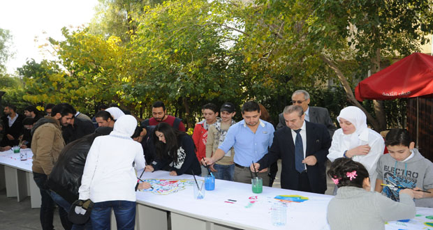 وقالت الفنانة نزهة عبادي العبد المحسن إن أبناء المحافظات السورية يشكلون فسيفساء سورية جميلة جسدناها في لوحة “خريطة سورية بلا مسميات” مشيرة إلى أن اللوحة بطول 20 مترا شارك الطلاب في الجامعة بكتابة عبارات عليها تعكس اللحمة الوطنية السورية .