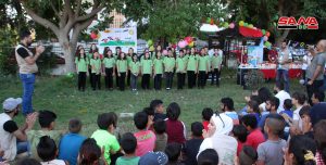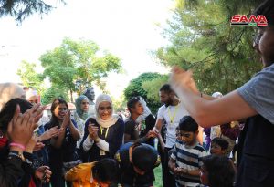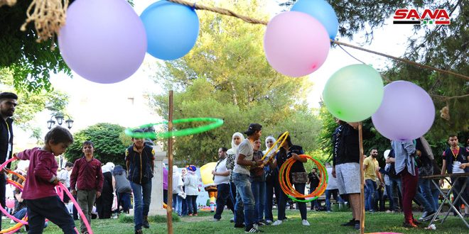 وتضمنت الفعالية التي أقيمت اليوم بالتنسيق مع وزارات الشؤون الاجتماعية والعمل والإعلام والثقافة والهيئة السورية لشؤون الأسرة والسكان فقرات فنية ورياضية وانشطة تعليمية مختلفة ومسابقات شارك بها أطفال من فاقدي الرعاية الأسرية ومشردين على مدى ساعة ونصف الساعة مع متطوعي مبادرات وجمعيات أهلية وشركات ومؤسسات خاصة كما عرض الصغار نتاجهم من رسوم وأعمال يدوية بعدد من صالات المراكز الثقافية ضمن معارض تستمر لعدة أيام.