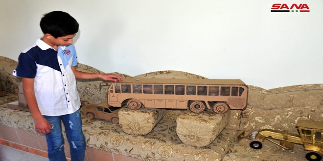 معروف 12 عاماً الحاصل على الريادة الطليعية في العمل اليدوي والمجسمات للعام الحالي على مستوى محافظة السويداء ذكر لـ سانا الشبابية أنه بدأ العمل في هذا المجال مع مجسمات صغيرة ثم طور نفسه