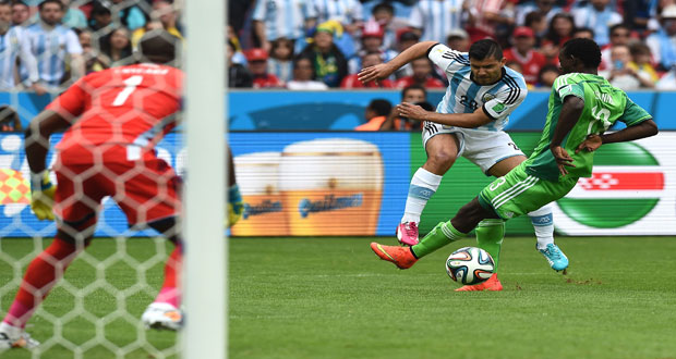 تأهل المنتخب النيجيري إلى الدور الثاني من بطولة كأس العالم لكرة القدم المقامة في البرازيل رغم خسارته أمام نظيره الأرجنتيني 2-3 في بورتو اليغرى في الجولة الثالثة والأخيرة من منافسات المجموعة السادسة.