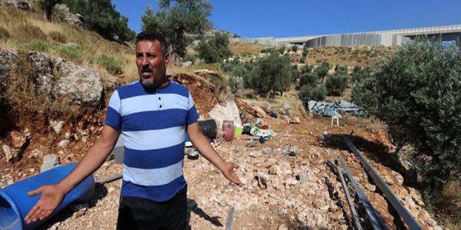 ويوضح زرينة 48 عاماً في تصريح لمراسل سانا أن مسلسل الهدم لمنزله بدأ في عام 2016 حيث سوت جرافات الاحتلال المنزل بالأرض وتمت إعادة بنائه مجدداً غير أن الاحتلال هدمه بعد ذلك مرتين في آذار الماضي وفي العاشر من حزيران المنصرم وشرد أفراد العائلة كحال مئات العائلات الفلسطينية.