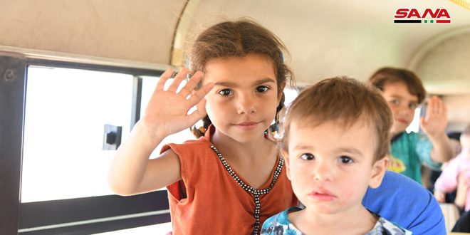 في إطار الجهود التي تبذلها الحكومة لإعادة السوريين المهجرين بفعل الإرهاب عادت اليوم دفعة جديدة من الأسر المهجرة من مخيم الركبان بمنطقة التنف بعد سنوات من الاحتجاز والتهجير القسريين بفعل الإرهاب وقوات الاحتلال الأمريكي ومجموعات إرهابية تدعمها تنتشر في المخيم ومحيطه.