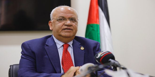 طالب أمين سر اللجنة التنفيذية لمنظمة التحرير الفلسطينية صائب عريقات المجتمع الدولي بالتدخل لوقف اعتداءات كيان الاحتلال الإسرائيلي وانتهاكاته المتواصلة بحق الشعب الفلسطيني وأرضه ومقدساته.