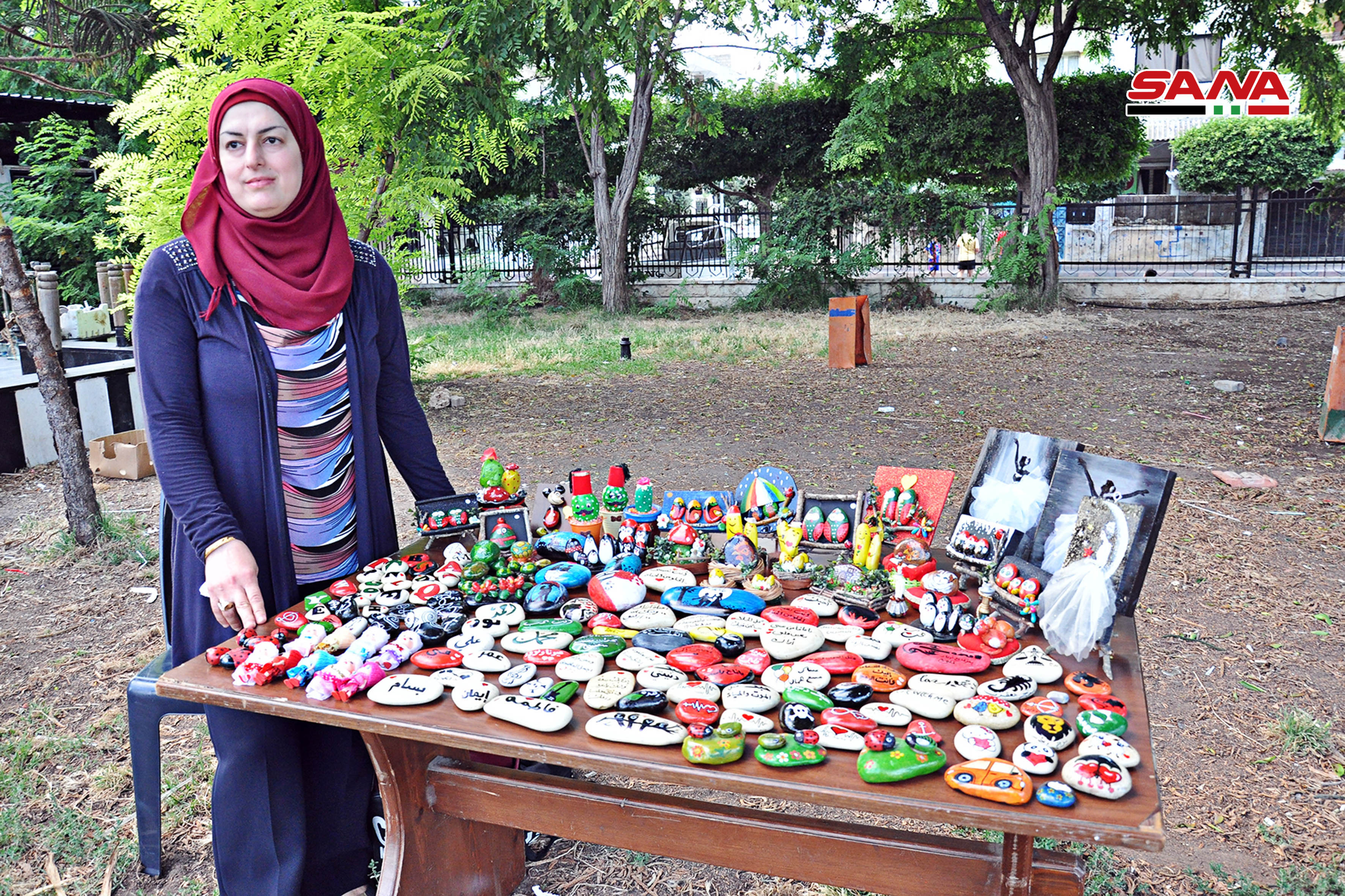 بدورها عبرت فادية قويقة التي تشارك بأعمال يدوية كالرسم على الحجر والخشب والصبار عن السعادة التي تغمرها عندما ترى ضحكات الأطفال لأنها تبعث في النفوس الأمل والتفاؤل.