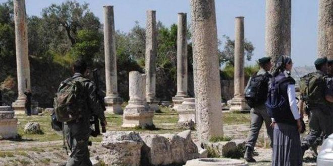 اقتحم مستوطنون إسرائيليون صباح اليوم المنطقة الأثرية في بلدة سبسطية شمال مدينة نابلس بالضفة الغربية.