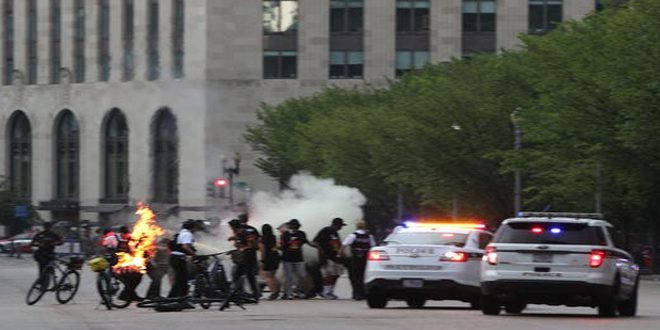 وجرت أمام البيت الأبيض أمس مظاهرات احتجاجية تحولت إلى اشتباكات عنيفة مع محتشدين لمتابعة خطاب ترامب بمناسبة الاحتفال بيوم الاستقلال الذي يصادف الرابع من تموز.