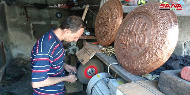 وأضاف محمد حسين نمرة صاحب محل لبيع النحاس: “عدت إلى محلي بعد تطهير السوق من الإرهاب وقمت بترميمه وباشرت بالعمل من جديد بهدف إعادة إحياء المهنة التراثية للنحاس” مشيرا إلى أنه يقوم بصناعة الأواني النحاسية المخصصة للمطاعم وديكورات المحلات والثريات والأدوات التراثية التي يقبل السياح على اقتنائها إضافة إلى تنفيذ طلبات الزبائن لمختلف مراحل صناعة النحاس من الطرق والنقش والتلميع مبينا في الوقت نفسه أنه تعلم حرفة النحاس من والده عندما كان عمره 8 سنوات ويعمل حاليا على تعليمها لولده حرصا على استمرار مهنة الأجداد.
