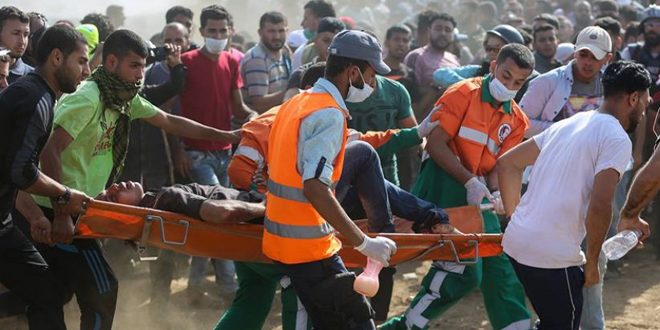 وأوضح المركز في تقرير اليوم حول أبرز الانتهاكات الإسرائيلية بحق الشعب الفلسطيني خلال الشهر الماضي نقلته وكالة وفا أن ثلاثة شهداء ارتقوا برصاص الاحتلال اثنان منهم في القدس المحتلة وشهيد في قطاع غزة المحاصر بينما أصيب 500 فلسطيني بجروح 395 منهم في القطاع جراء قمع قوات الاحتلال مسيرات العودة وكسر الحصار و105 آخرون خلال اقتحامها مدن وبلدات الضفة الغربية لافتا إلى أنه من بين المصابين 9 مسعفين وصحفي واحد.