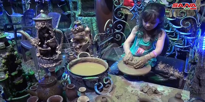 بمعدات بسيطة هي الطين والنار والدولاب استطاع حرفي الفخار نبيل علي تحويل هذه الأدوات إلى مزهريات وأدوات فخارية تلفت الأنظار وتشد الانتباه ولاسيما أن حرفة الفخار امتدت جذورها إلى عمق التاريخ وحملت اسمها عائلات دمشقية عملت بها وتوارثتها لكونها من أقدم الصناعات التقليدية التي عمل بها السوريون.