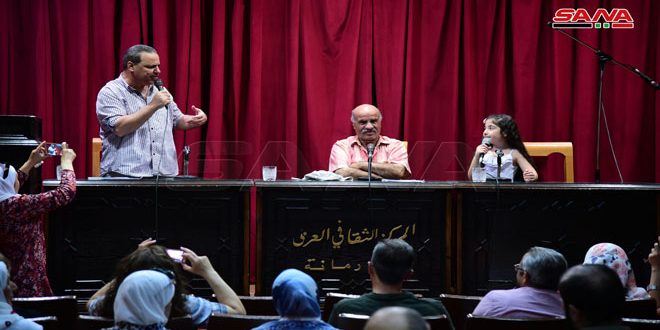 وقدم الشاعر عماد أبو راس عدداً من النصوص الموزونة التي تنوعت بين النزعة الذاتية الفلسفية والمواضيع الاجتماعية والوطنية معتبراً دمشق رمزاً للوطنية والإخلاص.