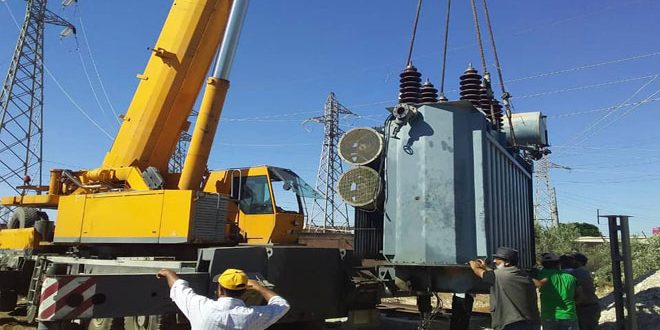 وبين المهندس غسان الزامل مدير عام شركة الكهرباء أن الورشات عملت على صيانة رافع جهد باستطاعة 30 ميغا واط وتركيبه على خط 66 كيلو فولط المغذي لمحطة تحويل العجمي التي تغذي بدورها مشروع ضخ الاشعري مشيرا إلى أن هذا الإجراء اتخذ لمواجهة ضعف التيار الكهربائي وانخفاضه والذي يؤثر بدوره على إقلاع المضخات.