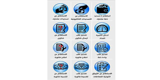 وتضم الخدمات التي وفرتها الشركة من خلال هذا التطبيق تقديم طلب فاتورة ومتابعة طلب الإصلاح وتسديدا إلكترونيا عبر حساب بالبنك العقاري واستعلاما عن الفواتير واستعلاما عن التسديدات النقدية والالكترونية وإدخال تأشيرة وتقديم طلب تقسيط ومتابعة طلب التقسيط وتقديم شكوى والاستعلام عن الشكوى.