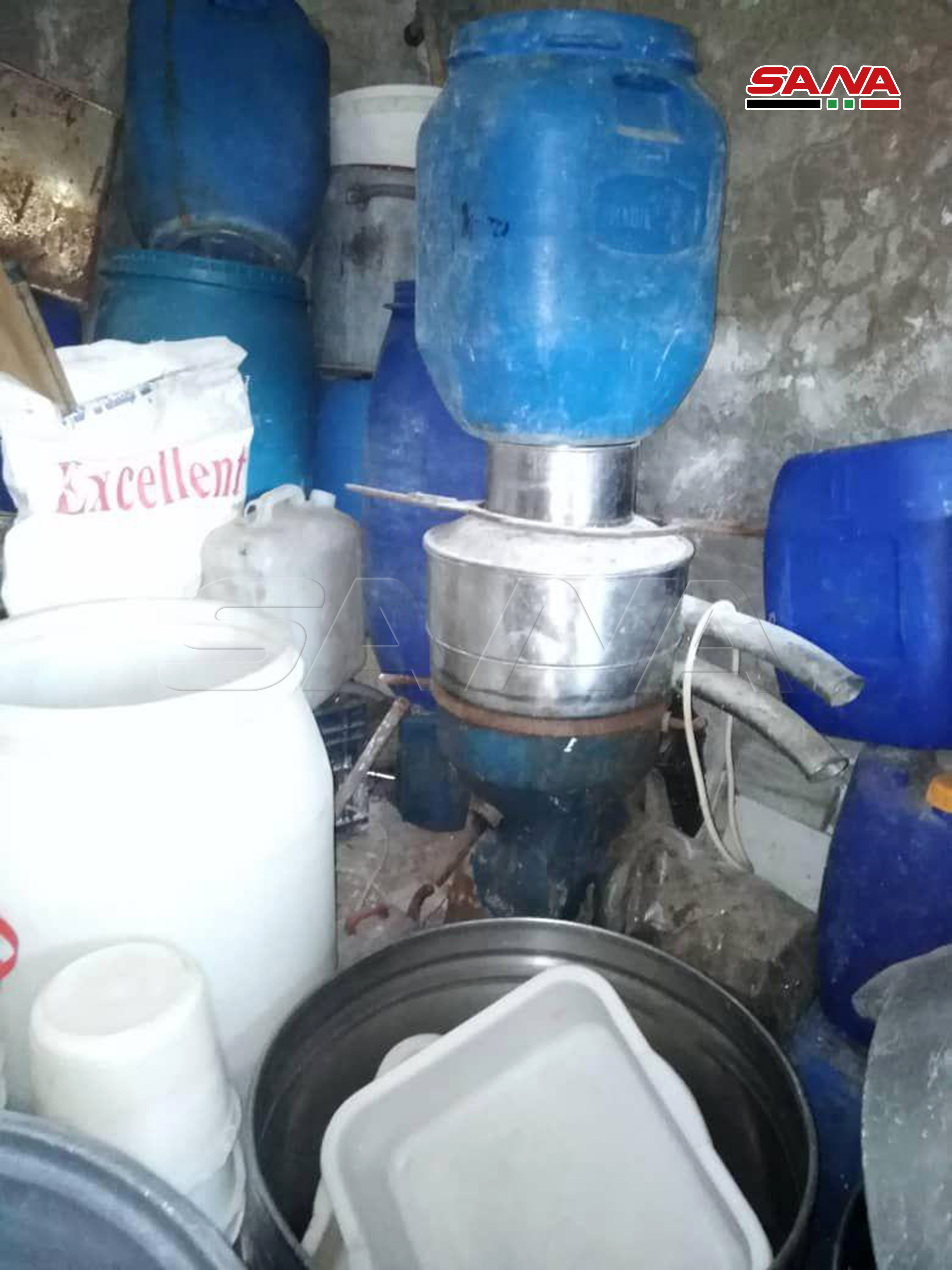 وفي حمص ضبطت عناصر مديرية التجارة الداخلية وحماية المستهلك معملا مخالفا لصناعة الأجبان والألبان في قرية تلذهب بريف المحافظة.