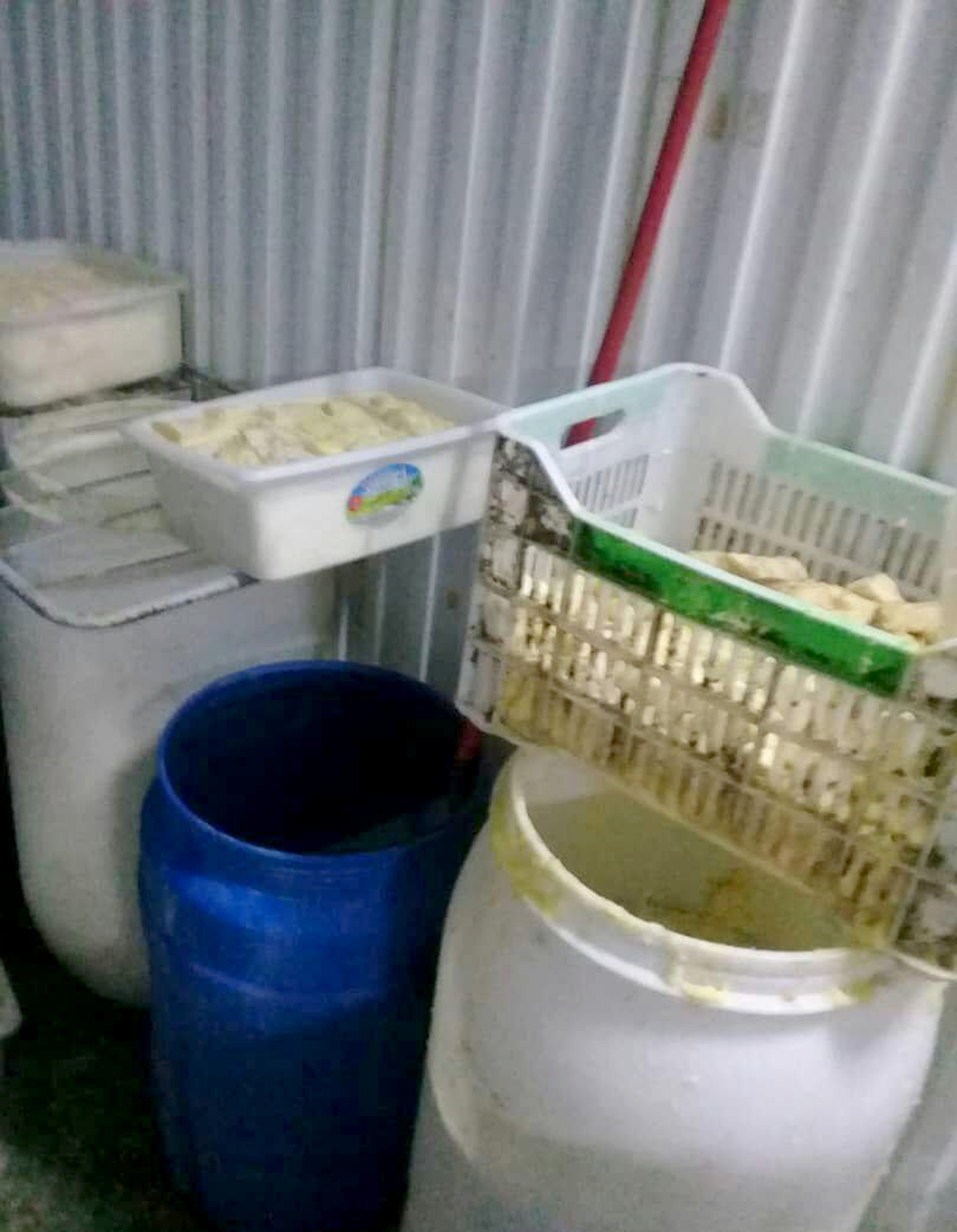 وبين المهندس رامي اليوسف مدير التجارة الداخلية وحماية المستهلك في حمص في تصريح لمراسلة سانا أن المعمل يستخدم مواد كيميائية غير مسموح باستخدامها في صناعة الألبان والأجبان “ماء أوكسجيني وغيره” وهو غير مستوف للشروط الصحية ولأدنى مقومات النظافة.