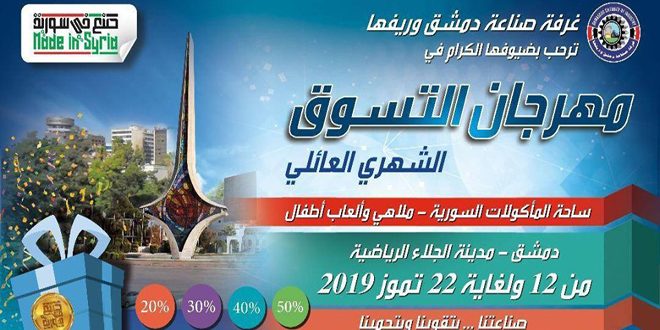 تنطلق بعد غد الجمعة في مدينة الجلاء الرياضية بالمزة فعاليات مهرجان التسوق صنع في سورية بدورته الـ 89 تحت عنوان “أهلاً بالصيف” والذي تنظمه غرفة صناعة دمشق وريفها سيستمر 11 يوماً بمشاركة أكثر من 120 شركة صناعية وطنية.