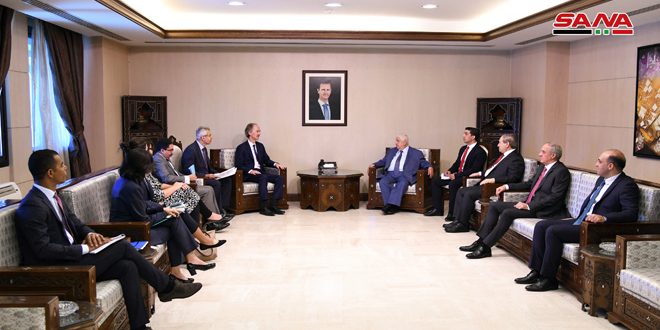 استقبل وليد المعلم نائب رئيس مجلس الوزراء وزير الخارجية والمغتربين صباح اليوم غير بيدرسون المبعوث الخاص للأمين العام للأمم المتحدة إلى سورية والوفد المرافق له.