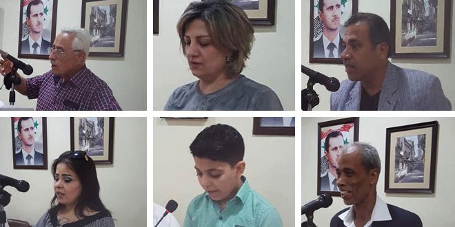وفي مجال القصة جاء النتاج الذي ألقته القاصة سناء الصباغ غنيا بالصور لتجسد خلالها ما ألم بالوطن من نكبات جراء الحرب.
