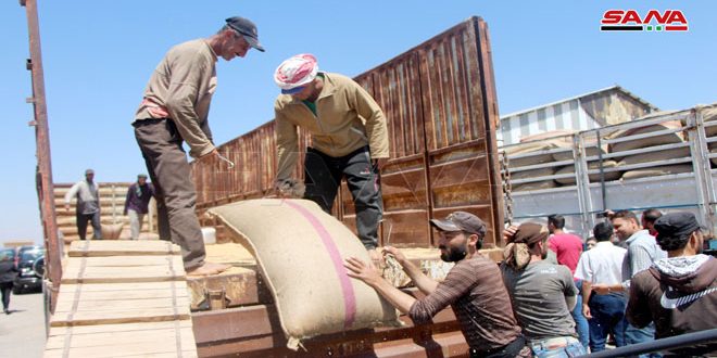 تتواصل عمليات تسليم الأقماح في محافظة درعا بوتيرة متسارعة بعد التسهيلات التي قدمتها المحافظة حيث فتحت وحدة صوامع المنطقة الجنوبية ومركز إكثار البذار في مدينة إزرع أبوابهما لاستقبال الأقماح الموردة من الفلاحين منذ الثامنة صباحا وحتى آخر حمولة.