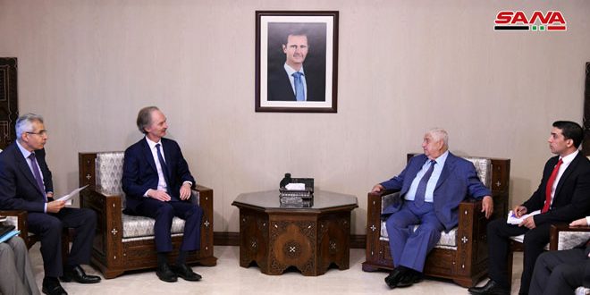 المعلم يبحث مع بيدرسون تشكيل لجنة مناقشة الدستور وآليات وإجراءات عملها