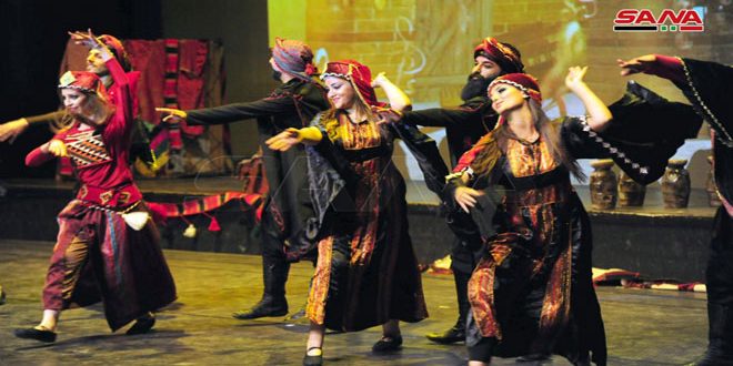 تابع جمهور مسرح دار الثقافة بحمص العرض المسرحي الراقص “درب الغزلان” لفرقة الرقة للفنون الشعبية بإشراف اسماعيل العجيلي.