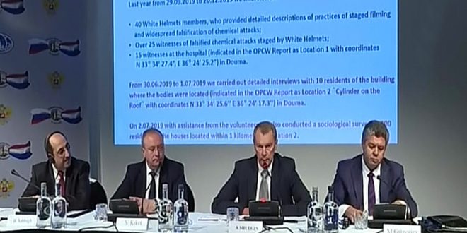بدوره قال عضو البعثة الروسية خلال المؤتمر إن عملية استفزازية نفذت في دوما وقدم الخبراء الروس الأدلة على ذلك لافتا إلى أن السكان الذين كانوا في البناء الذي تم وضع العبوة فيه أكدوا عدم تعرضهم لأي عارض صحي غريب وأن العاملين في المشفى الذي تم إسعاف ضحايا الهجوم المزعوم إليه في دوما فندوا مزاعم منظمة “الخوذ البيضاء” الإرهابية.
