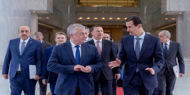 استقبل السيد الرئيس بشار الأسد اليوم المبعوث الخاص للرئيس الروسي فلاديمير بوتين إلى سورية ألكسندر لافرنتييف ونائب وزير الخارجية الروسي سيرغي فيرشينين والوفد المرافق.