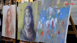 أما الفنان جان حنا فلفت إلى أن الملتقى يحمل الكثير من التراث والتاريخ وشكل حالة تفاعل جميلة مبينا أنه قدم لوحتي بورتريه الأولى لفتاة حملت تفاصيل من التراث والتقاليد والثانية جاءت رسما مباشرا لفتاة من الجمهور.