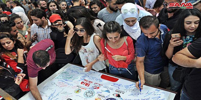 دمشق-سانا تابعت فعالية “يلا سوا” الوطنية جولتها لتوقيع أطول رسالة حب ووفاء للجولان العربي السوري …