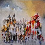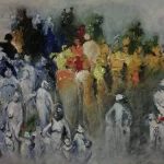 أما بالنسبة للوجه ووجوده بكثرة في لوحاته فبين أنه تسجيل للحظة المعبرة في ذروتها محاطة بجو من الألم مشيرا إلى أن الوجوه عنده تكتسب ملامح الضبابية كونها اللحظة الأكثر صدقا للتعبير عن الانفعالات الإنسانية ولكن ينقصها الحب وهي مليئة بالتعب كحال سورية التي أرهقها الإرهاب ولكنها ستنتفض وتقوم مجددا.
