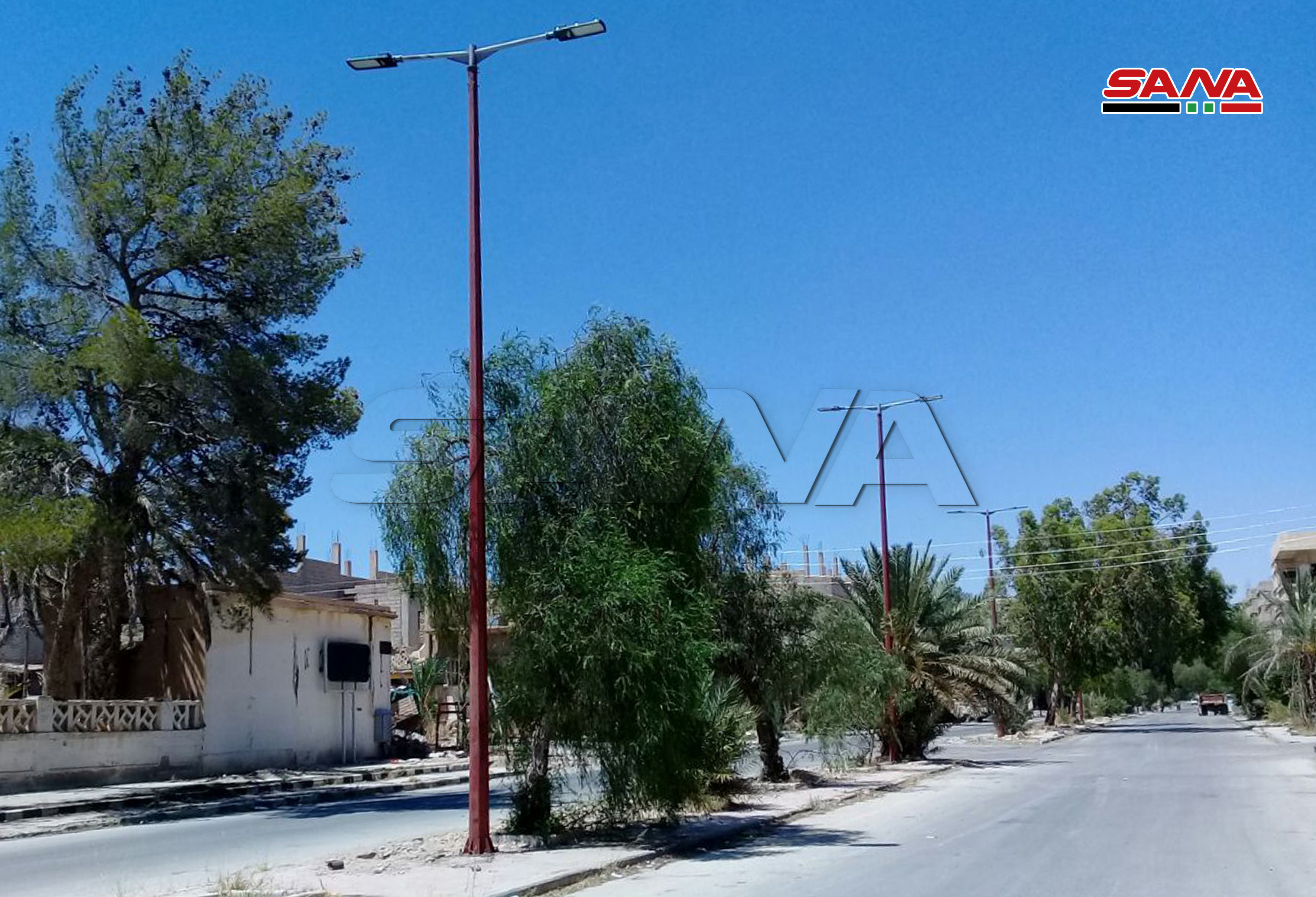 أنجزت ورشات فرع الشركة العامة لأعمال الكهرباء والاتصالات بحمص السورية للشبكات نصف الأعمال المقررة لمشروع إعادة تأهيل الإنارة الليلية لساحات مدينة تدمر وشوارعها الرئيسية التي خربها تنظيم “داعش” الإرهابي قبل اندحاره من المدينة.