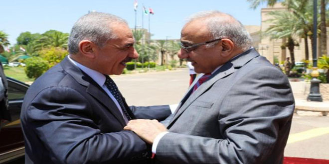 وجاء في بيان صادر اليوم عن مكتب عبد المهدي وتسلمت مراسلة سانا في بغداد نسخة منه أن رئيس الوزراء أكد خلال لقائه نظيره الفلسطيني محمد أشتية في بغداد أن “موقف العراق من فلسطين واضح لا لبس فيه وهو واجب وطني.. ونحن واثقون من الانتصار ونقدر تضحيات الشعب الفلسطيني في مواجهة آخر اشكال الاستعمار والاستيطان”.