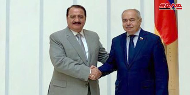 ونوه أوماخانوف وحداد أثناء اللقاء الذي عقد بمناسبة قرب حلول الذكرى الخامسة والسبعين لإقامة العلاقات الدبلوماسية بين البلدين بعمق علاقات الصداقة والتعاون بين سورية وروسيا الاتحادية في جميع المجالات بما في ذلك على الصعيد البرلماني.