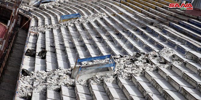 رئيس دائرة المنشآت الرياضية في فرع الاتحاد الرياضي بحمص المهندس محمد الحسين بين في تصريحه لمراسلة سانا الرياضية أنه سيتم تأهيل المدرجات القديمة وسيستغرق مدة عام مع الإبقاء على المدرجات الستة الحديثة في الملعب.