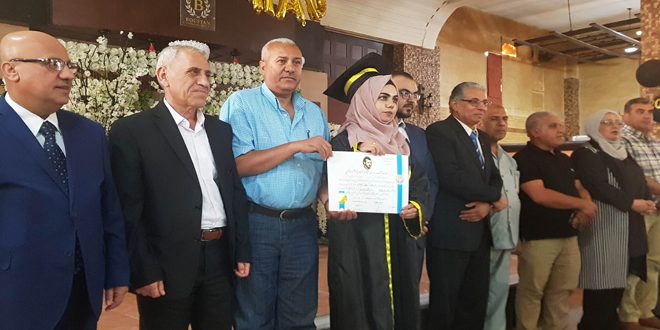 كرم فرع جامعة الفرات بالحسكة بالتعاون مع فرع الاتحاد الوطني لطلبة سورية 75 طالبا وطالبة من الأوائل في الكليات الجامعية الذين حازوا جائزة الباسل للتفوق العلمي.
