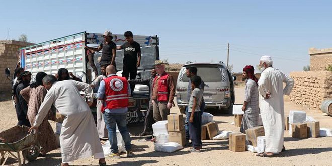 وزع فرع الهلال الأحمر العربي السوري في الحسكة 2000 سلة غذائية على الأسر المحتاجة والمتضررة في ريف الحسكة الجنوبي.