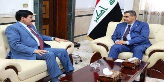 بحث وزير الدفاع العراقي نجاح الشمري وسفير سورية في بغداد صطام جدعان الدندح سبل تطوير التعاون المشترك بين سورية والعراق.