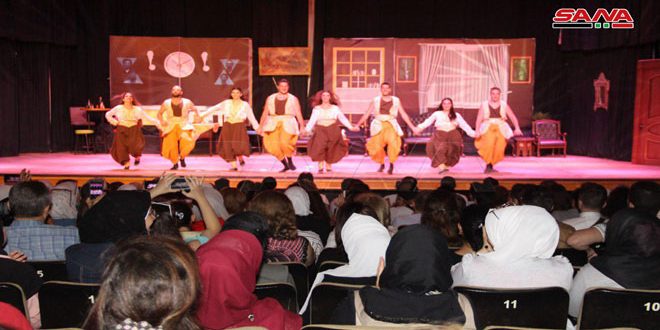 قدمت فرقتا تياترو وانفينيتي عرضا مسرحيا بقالب كوميدي هادف حمل عنوان “إندروفين” على مسرح دار التربية الثقافية بحلب تخللته لوحات فنية راقصة لفرقة انفينيتي.