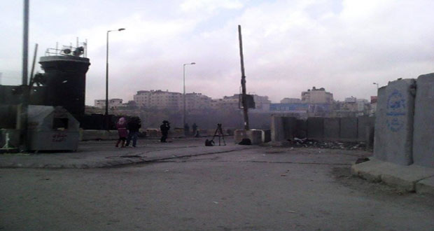 قلنديا شمالي القدس المحتلة خلال محاولة الفلسطينيين التصدي لاعتداء جنود الاحتلال عليهم.