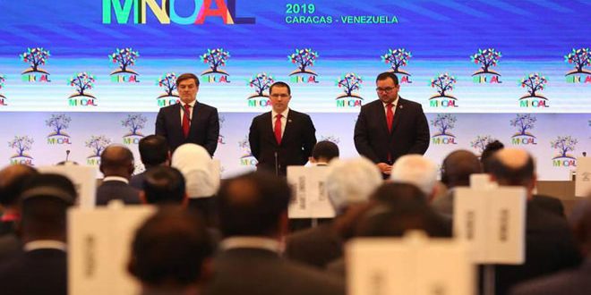 ولفت وزير الخارجية الفنزويلي خورخي أرياسا في كلمته الافتتاحية للاجتماع الذي يستمر يومين إلى أن بلاده وكوبا وسورية وإيران ونيغاراغوا وكوريا الديمقراطية هي “ضحية للتدخلات الخارجية المتبعة من قبل أجانب يسعون إلى تغيير الأنظمة وتبديلها بحكومات تخدم مصالحهم”.